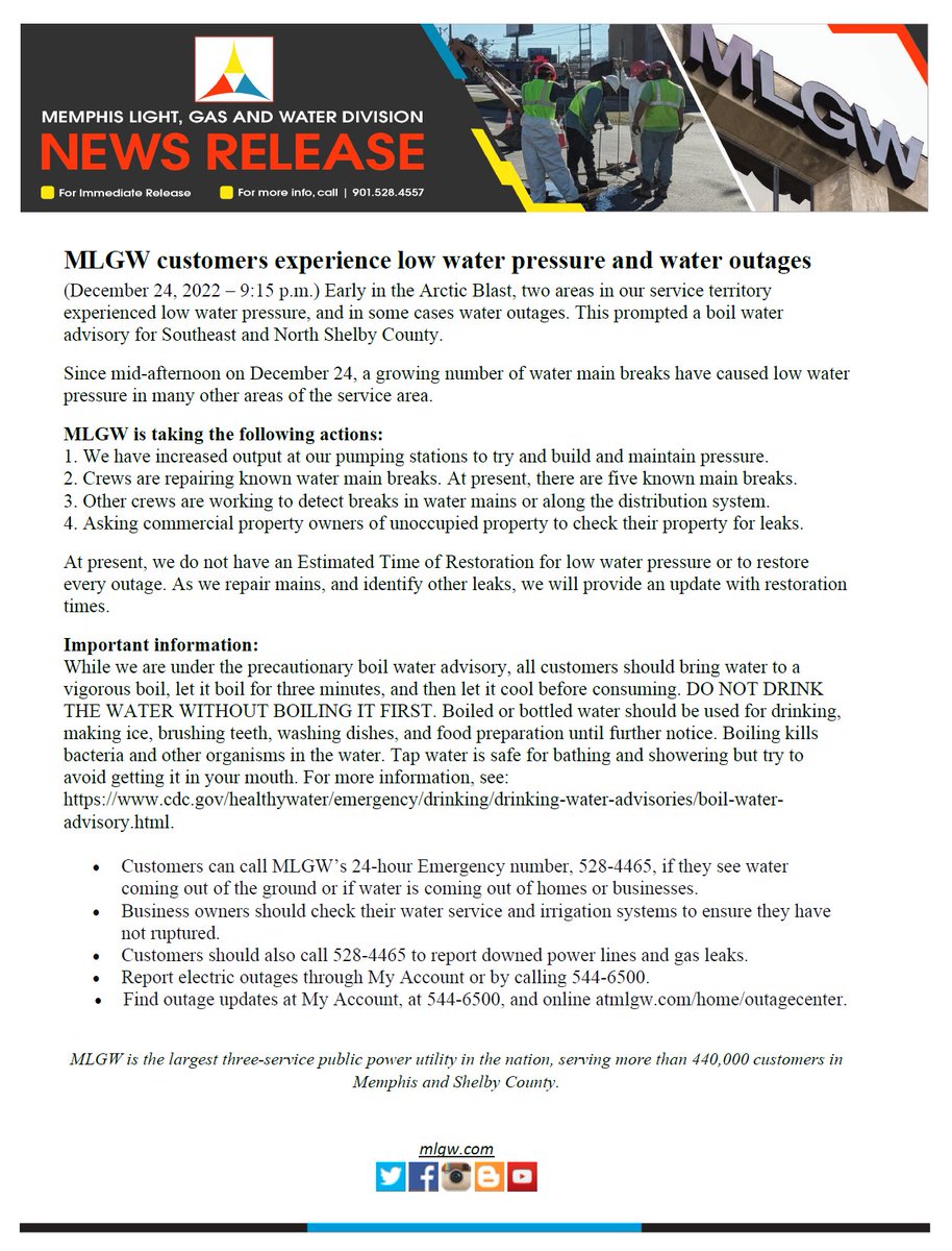 Mlgw Water Outage Map MLGW Issues a Precautionary Boil Water Advisory mlgw.com: Deze maatregel is genomen door de lokale drinkwatermaatschappij om het waterverbruik te beperken tijdens de aanhoudende droogte. Ook in de provincie Berrechid zijn er wateronderbrekingen, onder andere . ‘Code rood, natuur in nood’; om dit natuurgebied te redden móét het waterverbruik omlaag Er stroomt voor het eerst in jaren weer volop water door de beken en sprengen van het Heelsums .