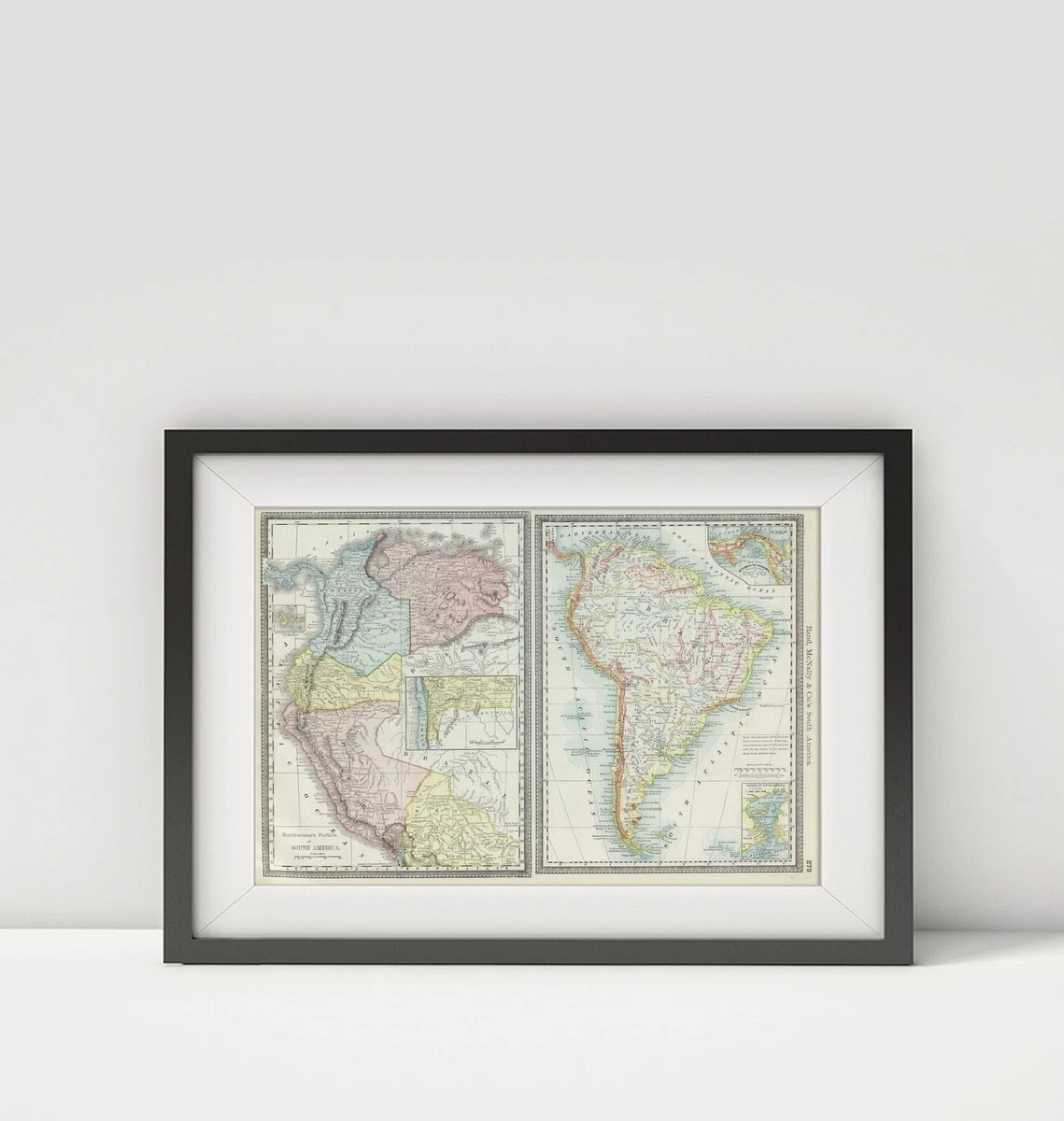 1889 SOUTH AMERICA Map ORIGINAL LARGE Brazil Argentina Patagonia